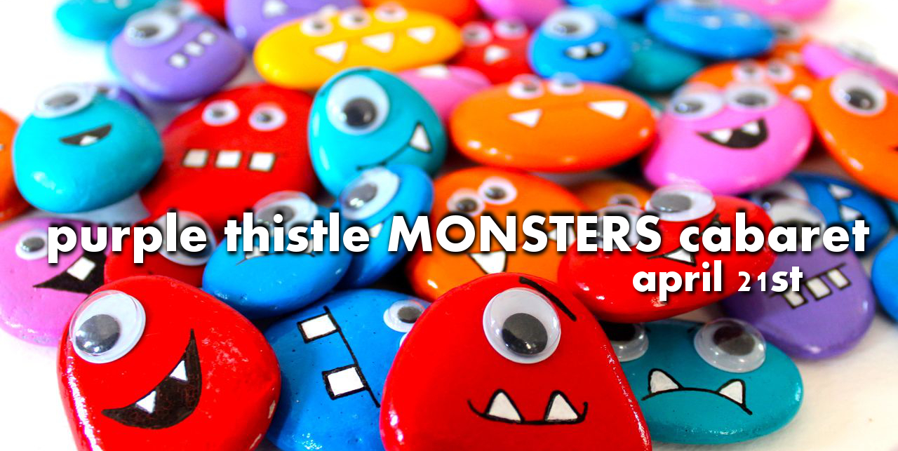 Perhaps you have looked under your bed recently, and perhaps you were disappointed not to find any monsters there. Where can one even find a monster these days? There is one answer: Come to the PURPLE THISTLE, on SUNDAY, April 21st!